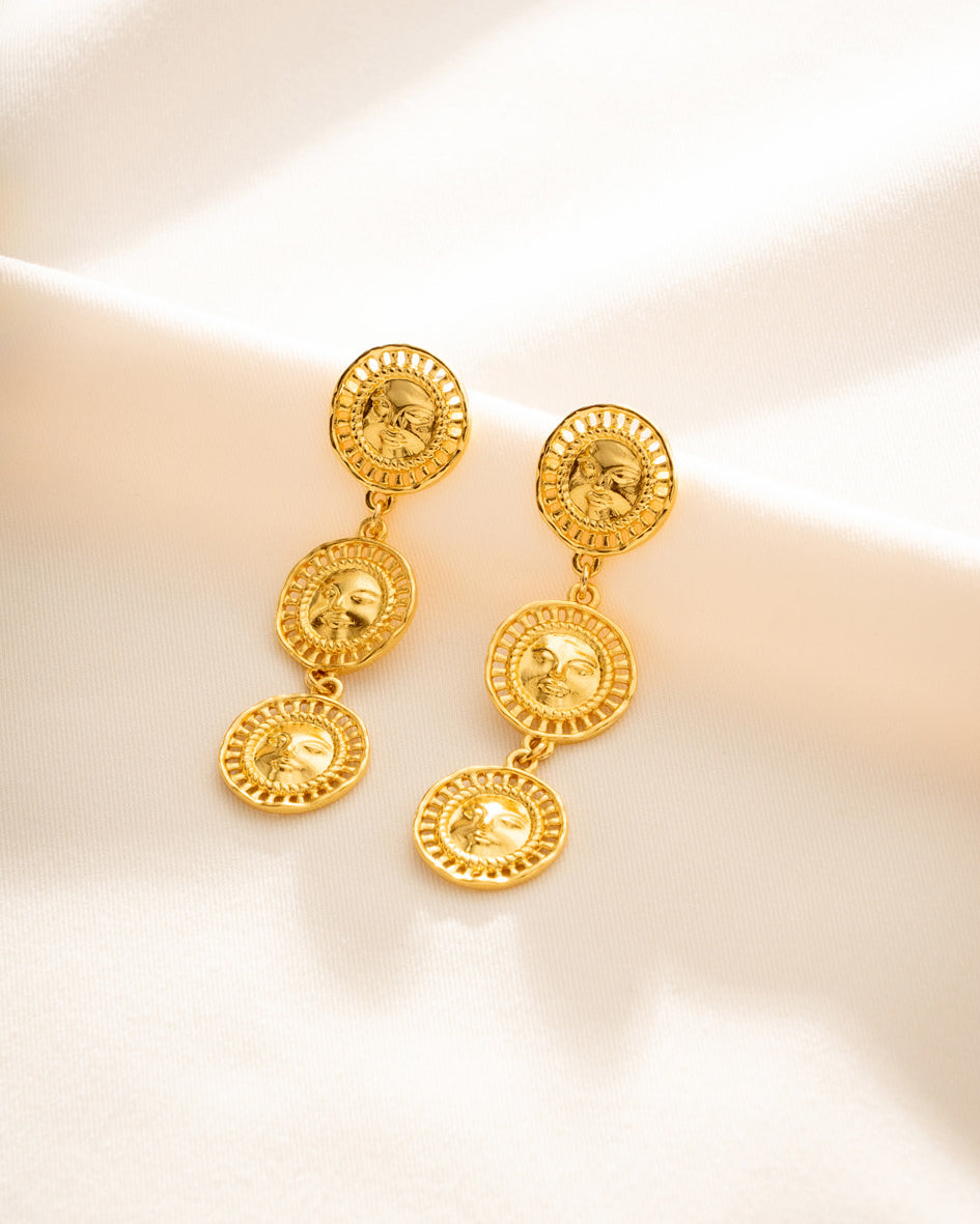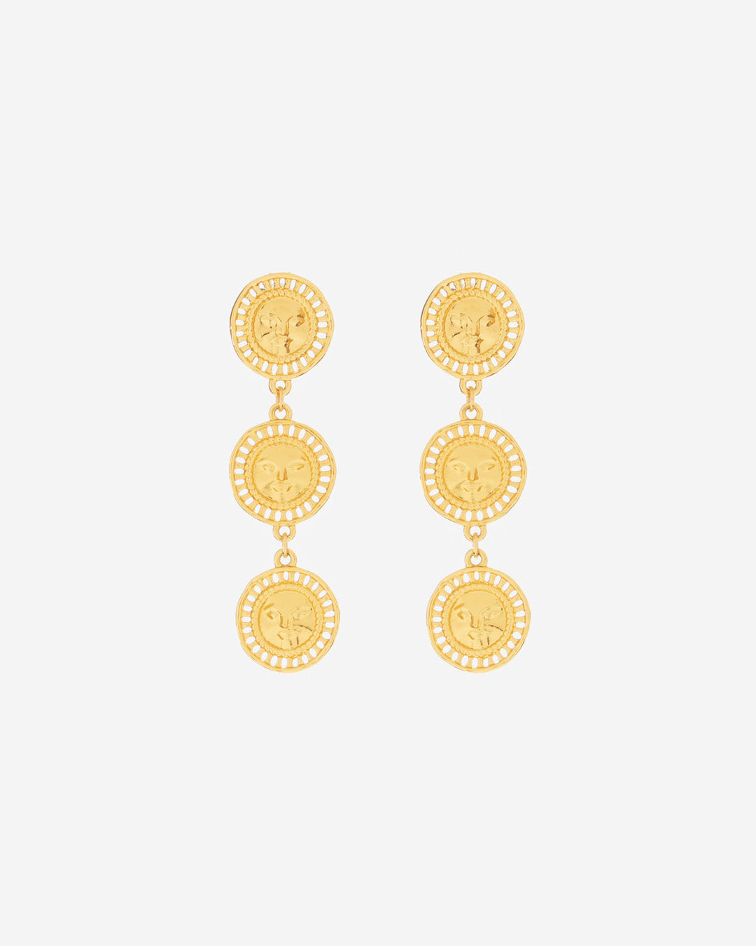 - Aretes elaborados Zamak (aleación de metales) con baño de oro de 24k.