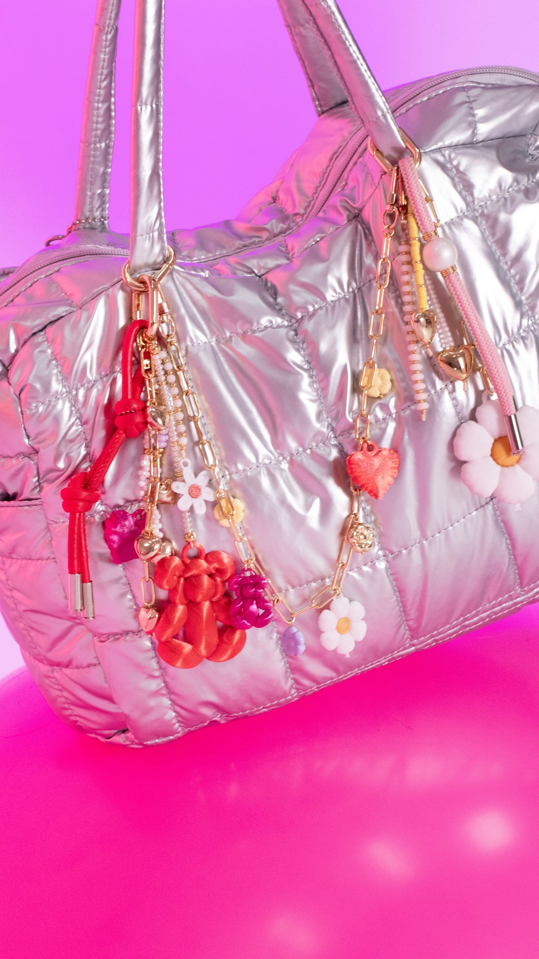 Ten presente que algunas fotos de apoyo pueden incluir otros accesorios que se venden por separado. Nuestros bagcharms son ideales para personalizar bolsos, maletas o usarlos como llaveros decorativos.
