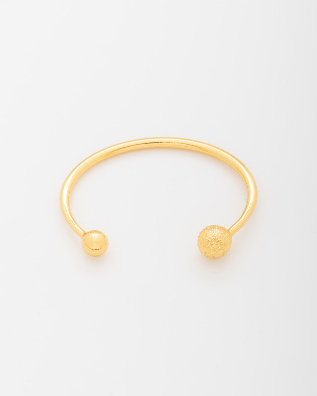 - Brazalete elaborado en Zamak (aleación de metales) con baño de oro de 24k.