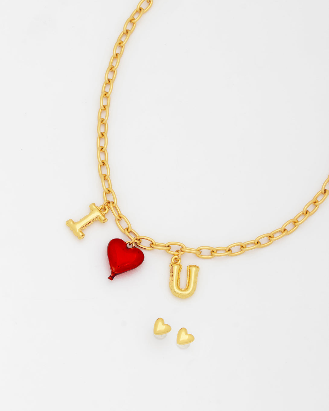 Collar Letras Corazón Globo + Aretes By Jose Y Cami