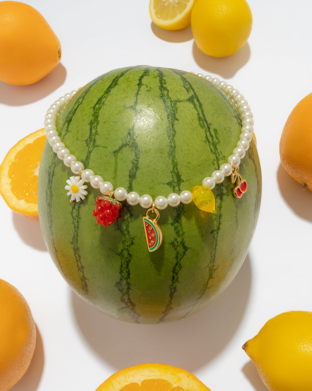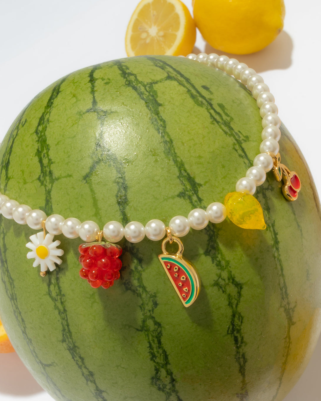 - Dijes del collar en Zamak (aleación de metales) con baño de oro de 24k.