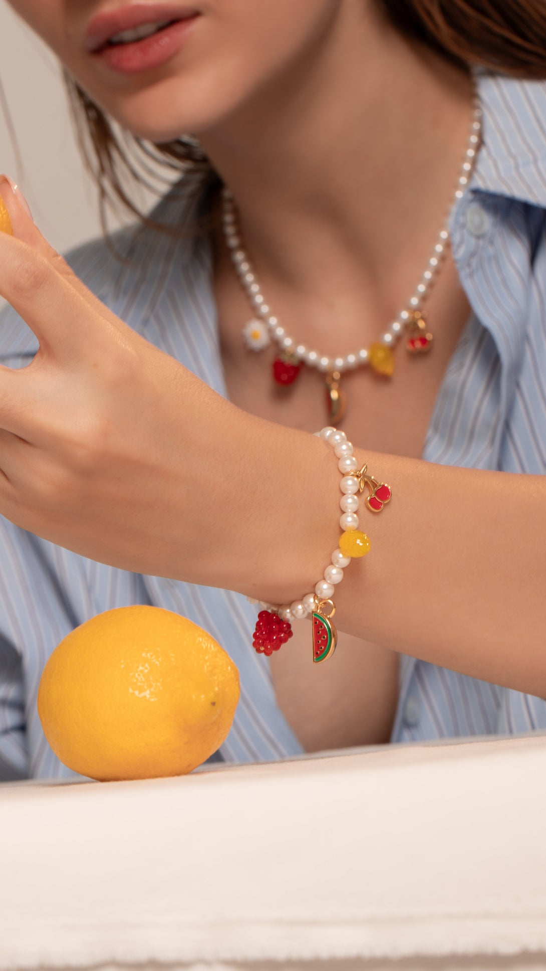 Pulsera Broche Frutas + Aretes