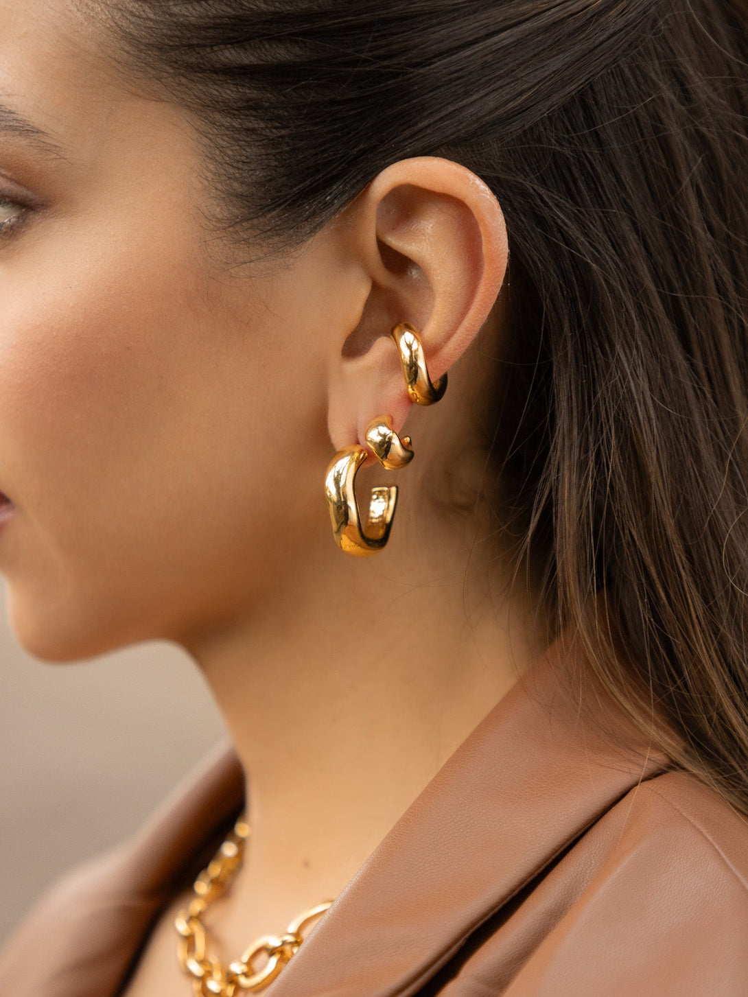 - Incluye: 1 par de candongas, 1 par de topos y 1 earcuff.